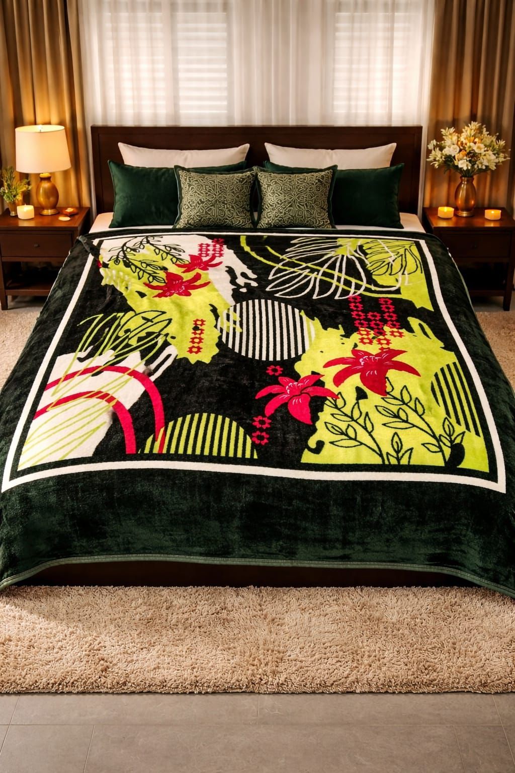 Double Bed – 1400 gm – Dark Green